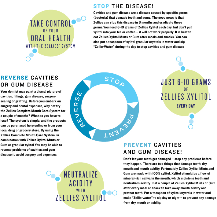 Zellies Complete Mouth Care System is designed to strengthen, clean and protect teeth from cavities and gum disease. It limits the growth of harmful plaque bacteria, protects teeth from acidity and dryness and promotes natural tooth repair and strengthening. The system includes a series of well-known rinses in the morning and at night, and delicious Zellies Xylitol products to protect teeth from dietary acidity and dryness all day.